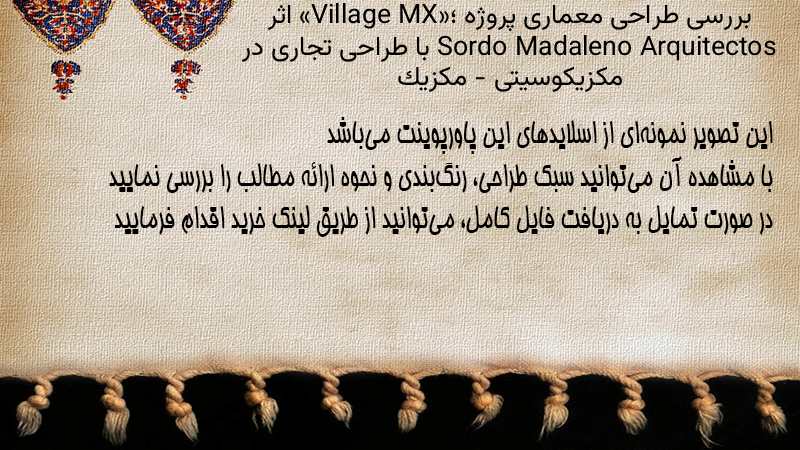 پاورپوینت کامل بررسی طراحی معماری پروژه «Village MX»؛ اثر Sordo Madaleno Arquitectos با طراحی تجاری در مکزیکوسیتی – مکزیک