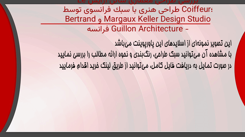 پاورپوینت کامل بررسی طراحی معماری سالن آرایش Le Coiffeur؛ طراحی هنری با سبک فرانسوی توسط Margaux Keller Design Studio و Bertrand Guillon Architecture – فرانسه