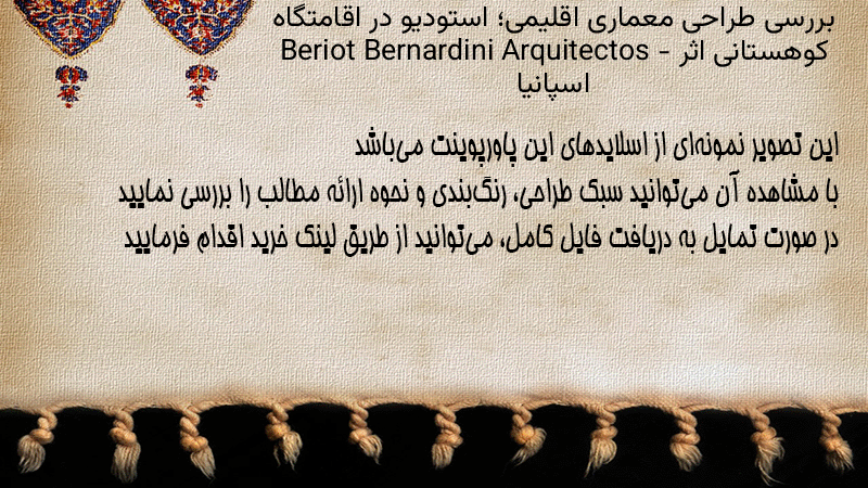 پاورپوینت کامل بررسی طراحی معماری اقلیمی؛ استودیو در اقامتگاه کوهستانی اثر Beriot Bernardini Arquitectos – اسپانیا