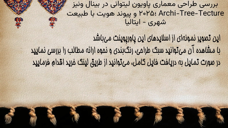 پاورپوینت کامل بررسی طراحی معماری پاویون لیتوانی در بینال ونیز ۲۰۲۵؛ Archi-Tree-Tecture و پیوند هویت با طبیعت شهری – ایتالیا