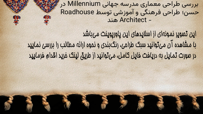پاورپوینت کامل بررسی طراحی معماری مدرسه جهانی Millennium در حسن؛ طراحی فرهنگی و آموزشی توسط Roadhouse Architect – هند