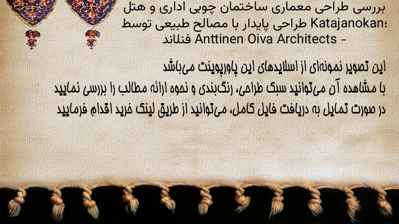 پاورپوینت کامل بررسی طراحی معماری ساختمان چوبی اداری و هتل Katajanokan؛ طراحی پایدار با مصالح طبیعی توسط Anttinen Oiva Architects – فنلاند