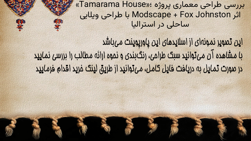 پاورپوینت کامل بررسی طراحی معماری پروژه «Tamarama House»؛ اثر Modscape + Fox Johnston با طراحی ویلایی ساحلی در استرالیا