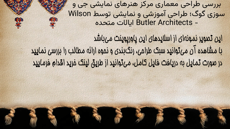 پاورپوینت کامل بررسی طراحی معماری مرکز هنرهای نمایشی جی و سوزی گوگ؛ طراحی آموزشی و نمایشی توسط Wilson Butler Architects – ایالات متحده