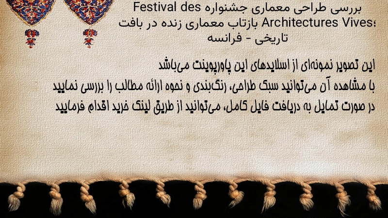 پاورپوینت کامل بررسی طراحی معماری جشنواره Festival des Architectures Vives؛ بازتاب معماری زنده در بافت تاریخی – فرانسه