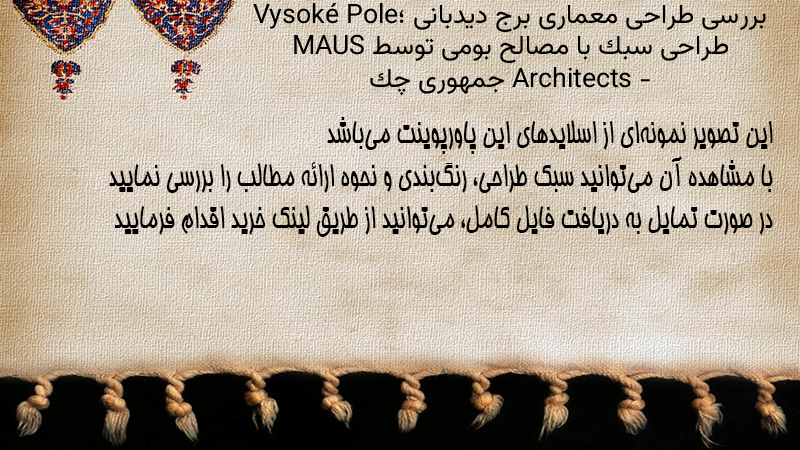 پاورپوینت کامل بررسی طراحی معماری برج دیدبانی Vysoké Pole؛ طراحی سبک با مصالح بومی توسط MAUS Architects – جمهوری چک