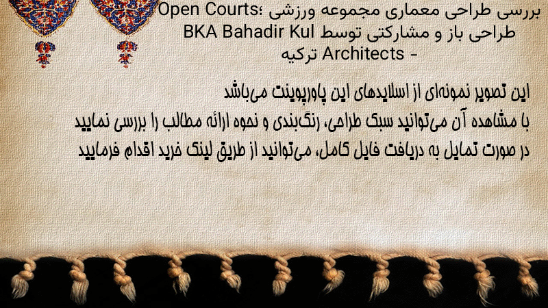 پاورپوینت کامل بررسی طراحی معماری مجموعه ورزشی Open Courts؛ طراحی باز و مشارکتی توسط BKA Bahadir Kul Architects – ترکیه