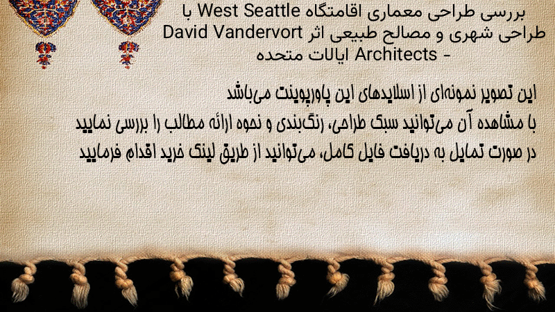 پاورپوینت کامل بررسی طراحی معماری اقامتگاه West Seattle با طراحی شهری و مصالح طبیعی اثر David Vandervort Architects – ایالات متحده