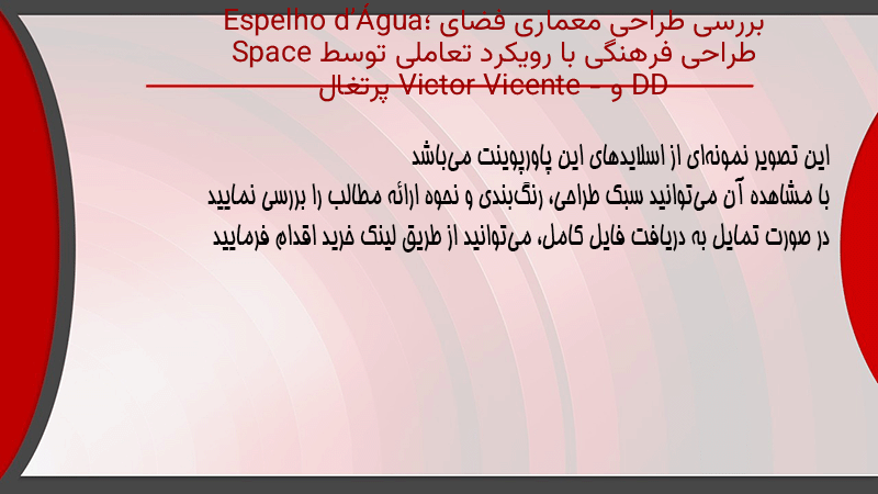 پاورپوینت کامل بررسی طراحی معماری فضای Espelho d’Água؛ طراحی فرهنگی با رویکرد تعاملی توسط Space DD و Victor Vicente – پرتغال