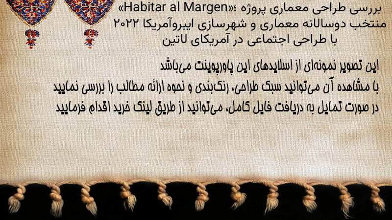 پاورپوینت کامل بررسی طراحی معماری پروژه «Habitar al Margen»؛ منتخب دوسالانه معماری و شهرسازی ایبروآمریکا ۲۰۲۲ با طراحی اجتماعی در آمریکای لاتین