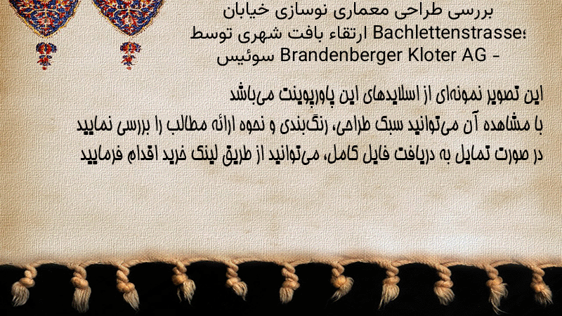 پاورپوینت کامل بررسی طراحی معماری نوسازی خیابان Bachlettenstrasse؛ ارتقاء بافت شهری توسط Brandenberger Kloter AG – سوئیس