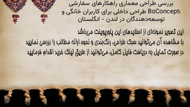 پاورپوینت کامل بررسی طراحی معماری راهکارهای سفارشی BoConcept؛ طراحی داخلی برای کاربران خانگی و توسعهدهندگان در لندن – انگلستان