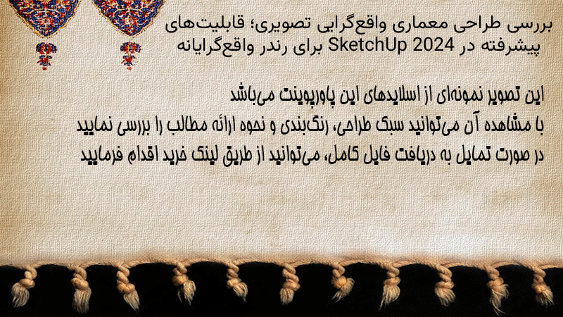 پاورپوینت کامل بررسی طراحی معماری واقعگرایی تصویری؛ قابلیتهای پیشرفته در SketchUp 2024 برای رندر واقعگرایانه