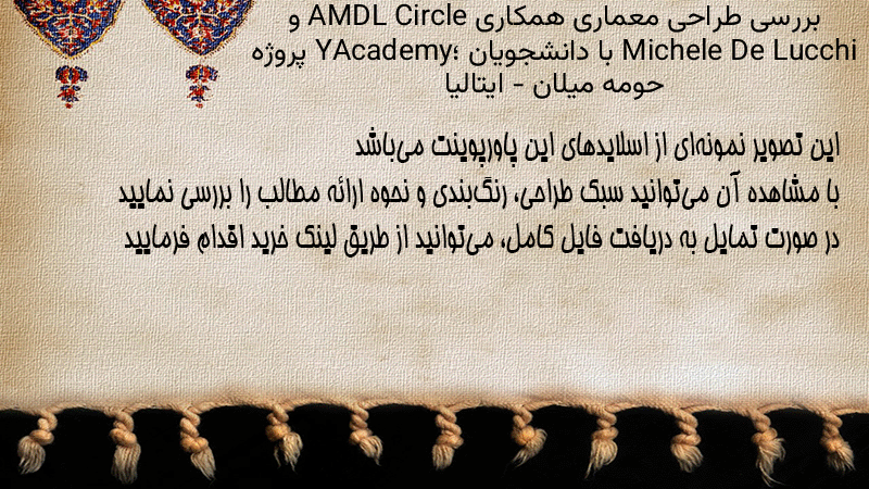 پاورپوینت کامل بررسی طراحی معماری همکاری AMDL Circle و Michele De Lucchi با دانشجویان YAcademy؛ پروژه حومه میلان – ایتالیا