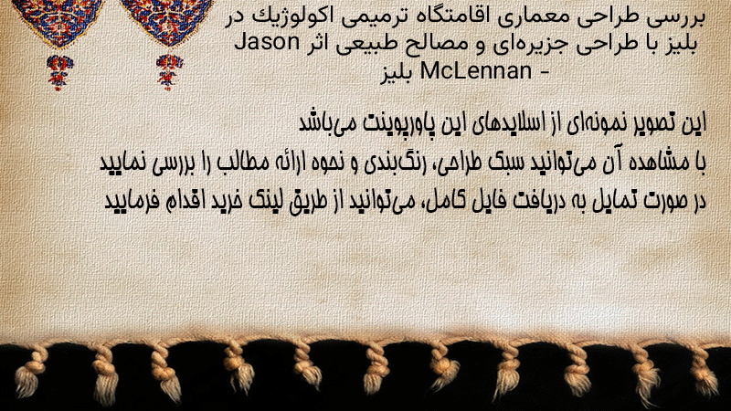 پاورپوینت کامل بررسی طراحی معماری اقامتگاه ترمیمی اکولوژیک در بلیز با طراحی جزیرهای و مصالح طبیعی اثر Jason McLennan – بلیز