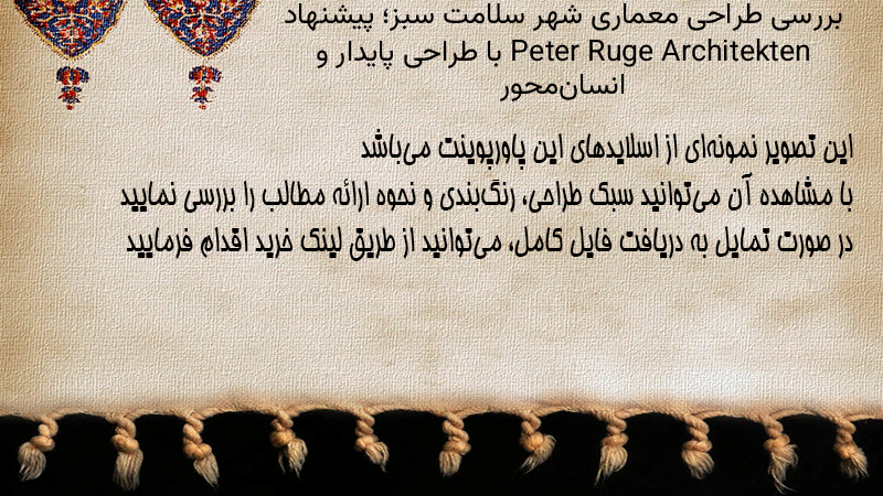 پاورپوینت کامل بررسی طراحی معماری شهر سلامت سبز؛ پیشنهاد Peter Ruge Architekten با طراحی پایدار و انسانمحور
