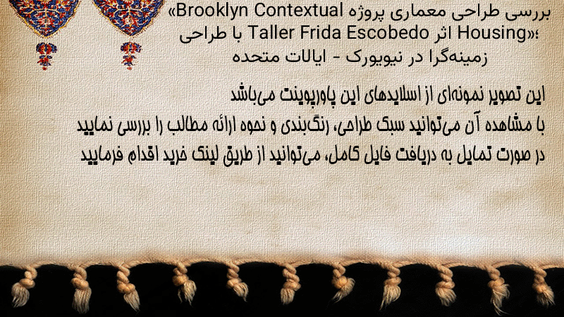 پاورپوینت کامل بررسی طراحی معماری پروژه «Brooklyn Contextual Housing»؛ اثر Taller Frida Escobedo با طراحی زمینهگرا در نیویورک – ایالات متحده
