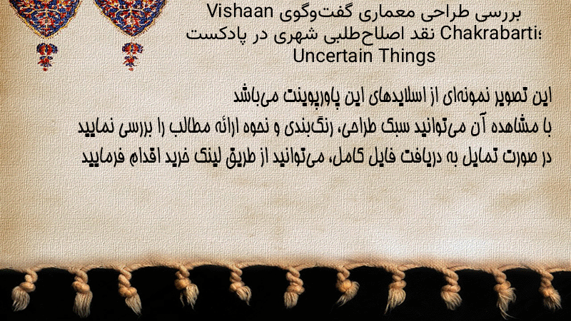 پاورپوینت کامل بررسی طراحی معماری گفتوگوی Vishaan Chakrabarti؛ نقد اصلاحطلبی شهری در پادکست Uncertain Things