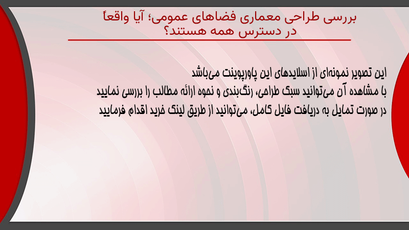 پاورپوینت کامل بررسی طراحی معماری فضاهای عمومی؛ آیا واقعاً در دسترس همه هستند؟