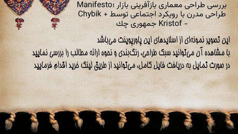 پاورپوینت کامل بررسی طراحی معماری بازآفرینی بازار Manifesto؛ طراحی مدرن با رویکرد اجتماعی توسط Chybik + Kristof – جمهوری چک
