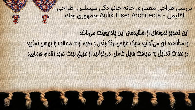 پاورپوینت کامل بررسی طراحی معماری خانه خانوادگی میسلین؛ طراحی اقلیمی Aulik Fiser Architects – جمهوری چک