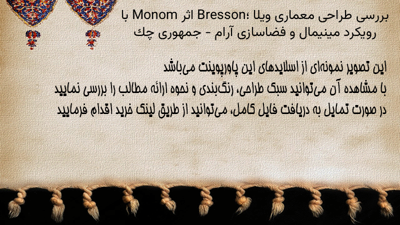 پاورپوینت کامل بررسی طراحی معماری ویلا Bresson؛ اثر Monom با رویکرد مینیمال و فضاسازی آرام – جمهوری چک