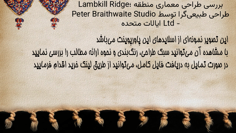 پاورپوینت کامل بررسی طراحی معماری منطقه Lambkill Ridge؛ طراحی طبیعیگرا توسط Peter Braithwaite Studio Ltd – ایالات متحده