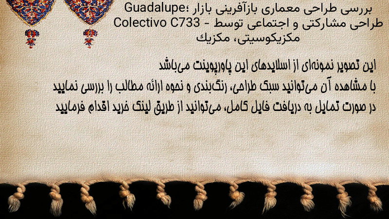 پاورپوینت کامل بررسی طراحی معماری بازآفرینی بازار Guadalupe؛ طراحی مشارکتی و اجتماعی توسط Colectivo C733 – مکزیکوسیتی، مکزیک