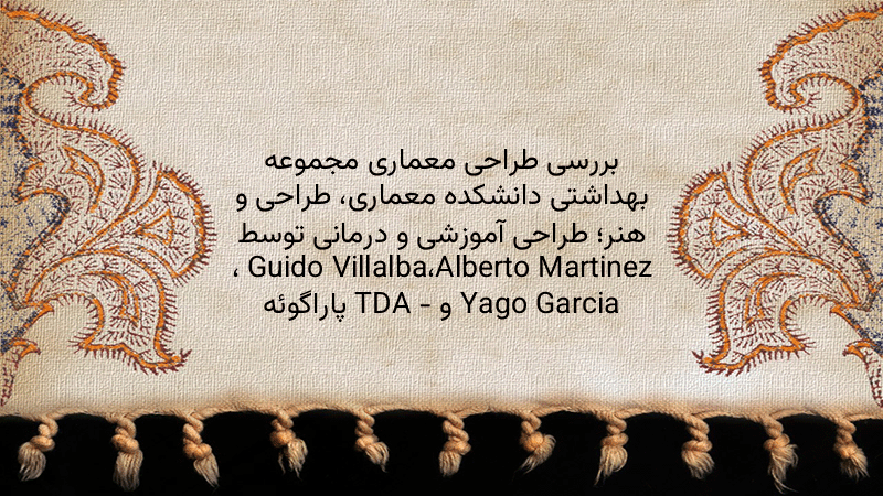 پاورپوینت کامل بررسی طراحی معماری مجموعه بهداشتی دانشکده معماری، طراحی و هنر؛ طراحی آموزشی و درمانی توسط Alberto Martinez، Guido Villalba، Yago Garcia و TDA – پاراگوئه