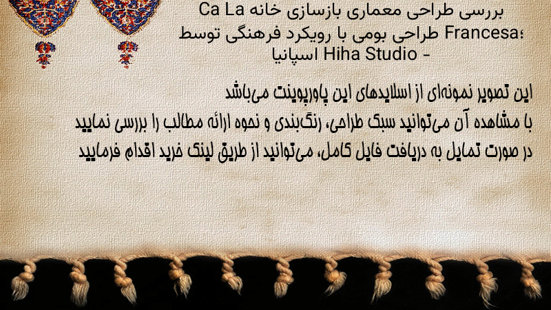 پاورپوینت کامل بررسی طراحی معماری بازسازی خانه Ca La Francesa؛ طراحی بومی با رویکرد فرهنگی توسط Hiha Studio – اسپانیا