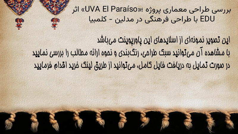 پاورپوینت کامل بررسی طراحی معماری پروژه «UVA El Paraíso»؛ اثر EDU با طراحی فرهنگی در مدلین – کلمبیا