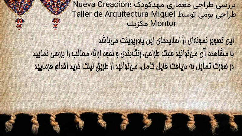 پاورپوینت کامل بررسی طراحی معماری مهدکودک Nueva Creación؛ طراحی بومی توسط Taller de Arquitectura Miguel Montor – مکزیک