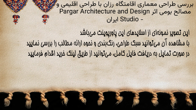 پاورپوینت کامل بررسی طراحی معماری اقامتگاه رزان با طراحی اقلیمی و مصالح بومی اثر Pargar Architecture and Design Studio – ایران