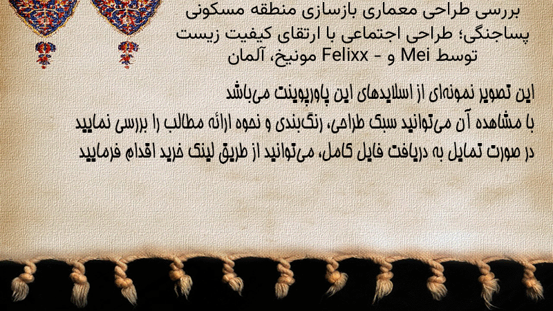 پاورپوینت کامل بررسی طراحی معماری بازسازی منطقه مسکونی پساجنگی؛ طراحی اجتماعی با ارتقای کیفیت زیست توسط Mei و Felixx – مونیخ، آلمان