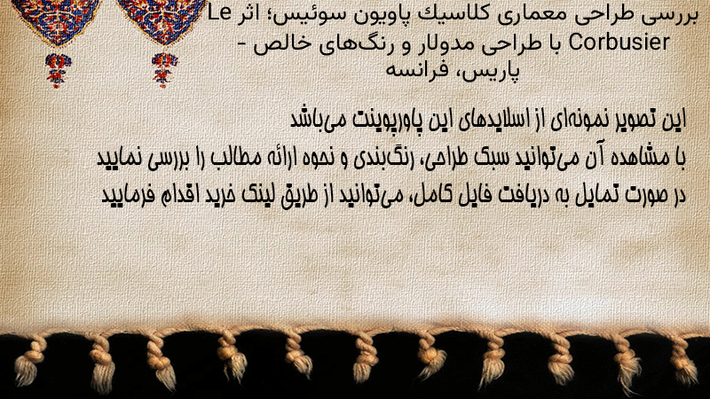 پاورپوینت کامل بررسی طراحی معماری کلاسیک پاویون سوئیس؛ اثر Le Corbusier با طراحی مدولار و رنگهای خالص – پاریس، فرانسه