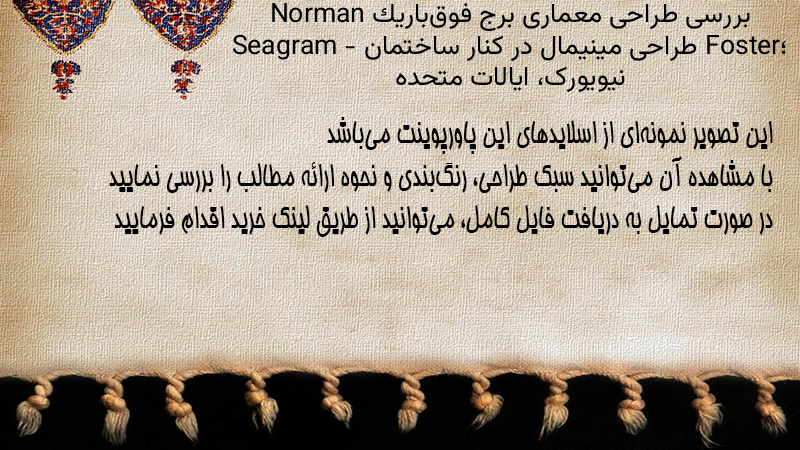پاورپوینت کامل بررسی طراحی معماری برج فوقباریک Norman Foster؛ طراحی مینیمال در کنار ساختمان Seagram – نیویورک، ایالات متحده