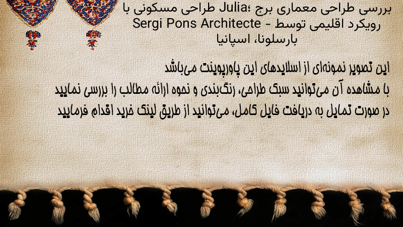 پاورپوینت کامل بررسی طراحی معماری برج Julia؛ طراحی مسکونی با رویکرد اقلیمی توسط Sergi Pons Architecte – بارسلونا، اسپانیا