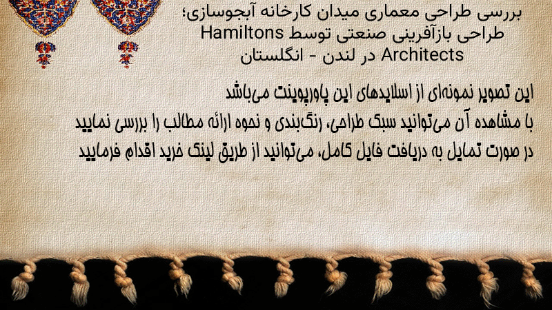 پاورپوینت کامل بررسی طراحی معماری میدان کارخانه آبجوسازی؛ طراحی بازآفرینی صنعتی توسط Hamiltons Architects در لندن – انگلستان