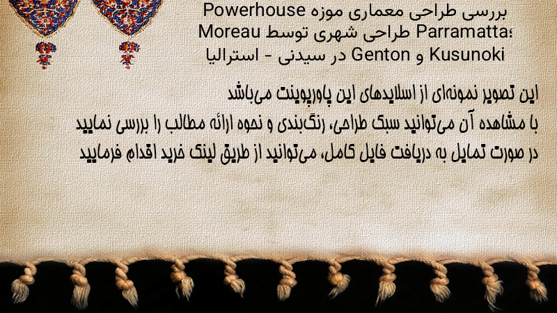 پاورپوینت کامل بررسی طراحی معماری موزه Powerhouse Parramatta؛ طراحی شهری توسط Moreau Kusunoki و Genton در سیدنی – استرالیا