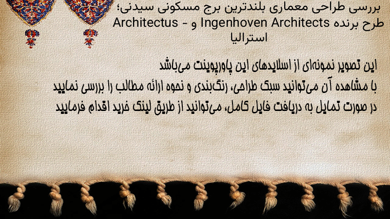 پاورپوینت کامل بررسی طراحی معماری بلندترین برج مسکونی سیدنی؛ طرح برنده Ingenhoven Architects و Architectus – استرالیا