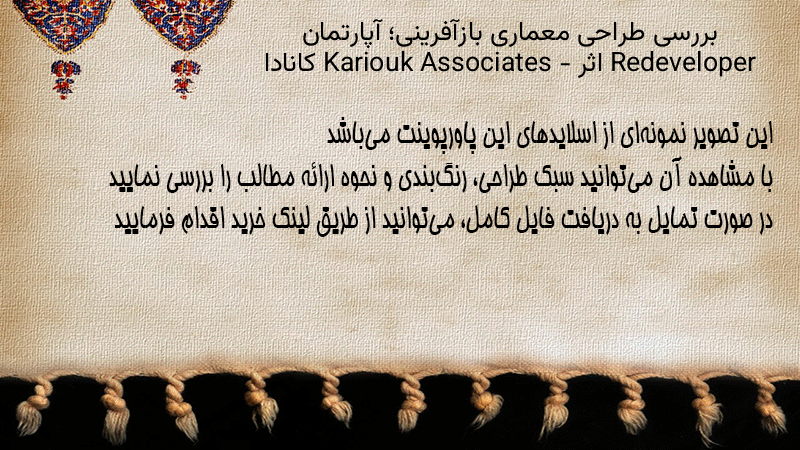 پاورپوینت کامل بررسی طراحی معماری بازآفرینی؛ آپارتمان Redeveloper اثر Kariouk Associates – کانادا
