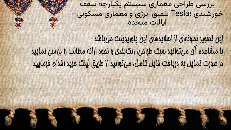 پاورپوینت کامل بررسی طراحی معماری سیستم یکپارچه سقف خورشیدی Tesla؛ تلفیق انرژی و معماری مسکونی – ایالات متحده