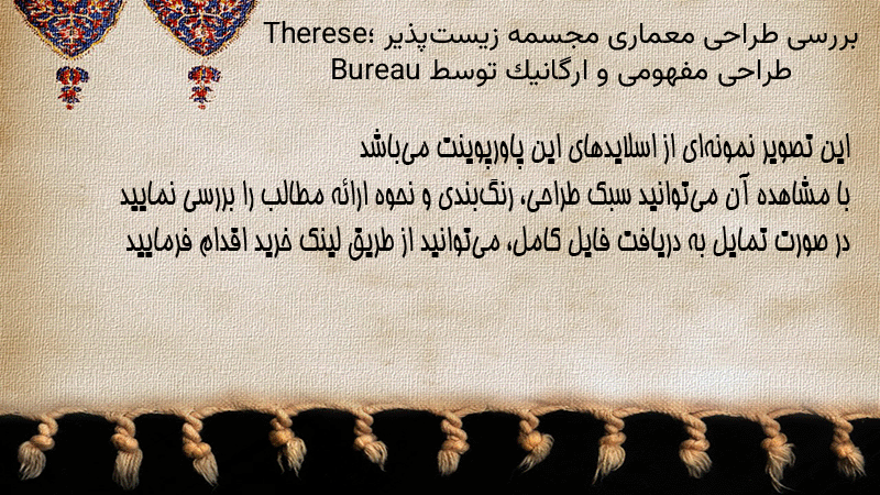 پاورپوینت کامل بررسی طراحی معماری مجسمه زیستپذیر Therese؛ طراحی مفهومی و ارگانیک توسط Bureau
