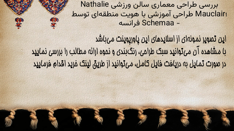 پاورپوینت کامل بررسی طراحی معماری سالن ورزشی Nathalie Mauclair؛ طراحی آموزشی با هویت منطقهای توسط Schemaa – فرانسه