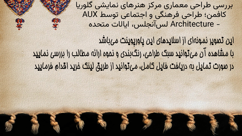 پاورپوینت کامل بررسی طراحی معماری مرکز هنرهای نمایشی گلوریا کافمن؛ طراحی فرهنگی و اجتماعی توسط AUX Architecture – لسآنجلس، ایالات متحده