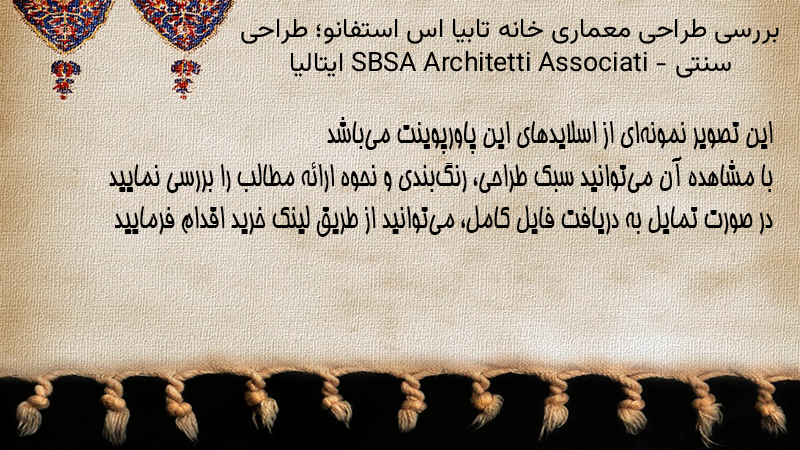 پاورپوینت کامل بررسی طراحی معماری خانه تابیا اس استفانو؛ طراحی سنتی SBSA Architetti Associati – ایتالیا