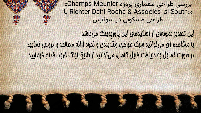پاورپوینت کامل بررسی طراحی معماری پروژه «Champs Meunier South»؛ اثر Richter Dahl Rocha & Associés با طراحی مسکونی در سوئیس