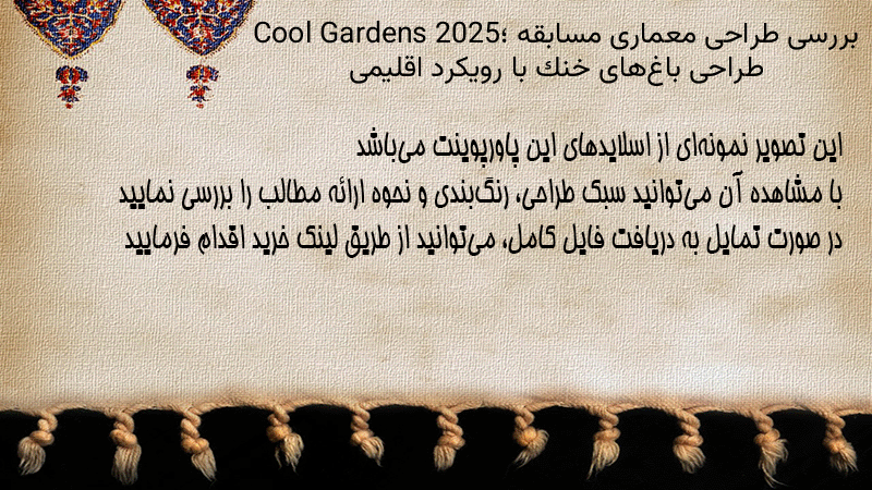 پاورپوینت کامل بررسی طراحی معماری مسابقه Cool Gardens 2025؛ طراحی باغهای خنک با رویکرد اقلیمی