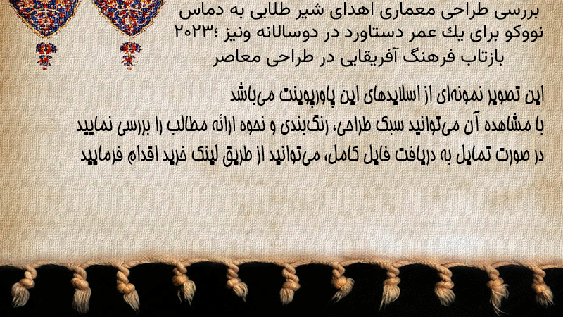 پاورپوینت کامل بررسی طراحی معماری اهدای شیر طلایی به دماس نووکو برای یک عمر دستاورد در دوسالانه ونیز ۲۰۲۳؛ بازتاب فرهنگ آفریقایی در طراحی معاصر