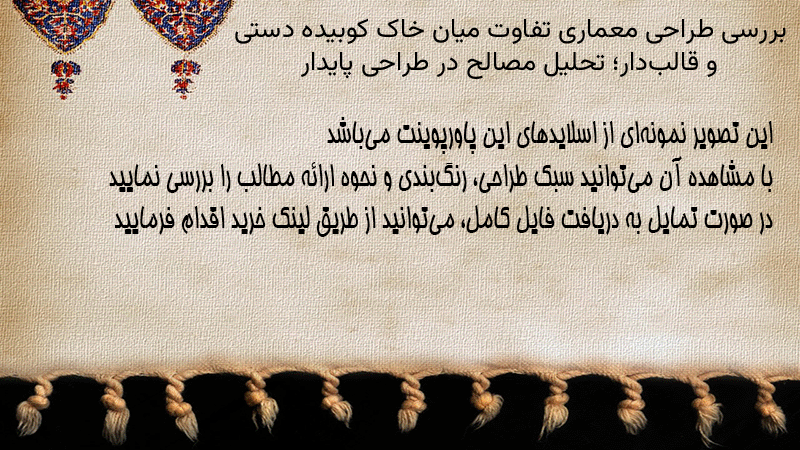 پاورپوینت کامل بررسی طراحی معماری تفاوت میان خاک کوبیده دستی و قالبدار؛ تحلیل مصالح در طراحی پایدار